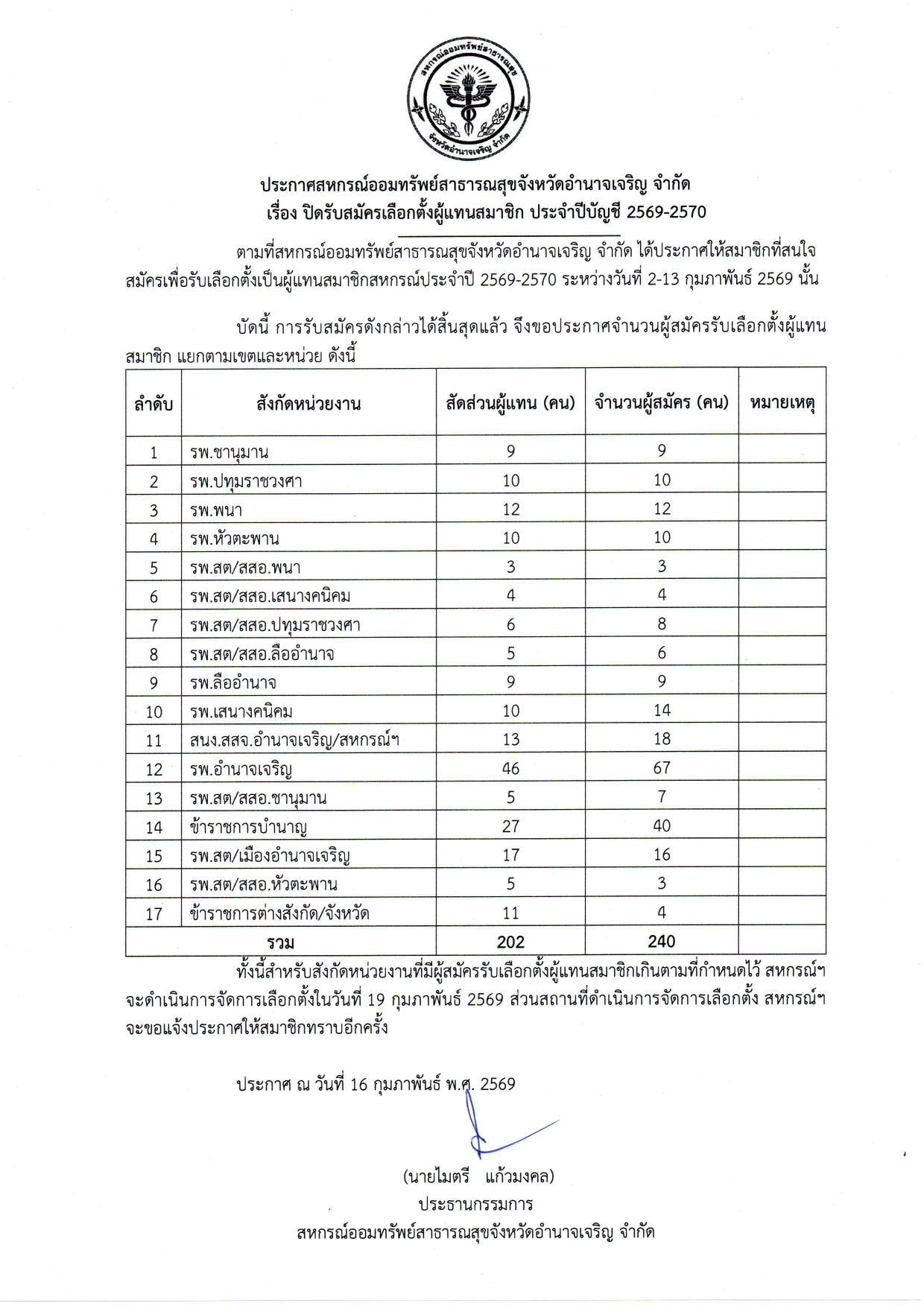 ประกาศ ปิดรับสมัครเลือกตั้งผู้แทนสมาชิก ประจำปีบัญชี 2569-2570