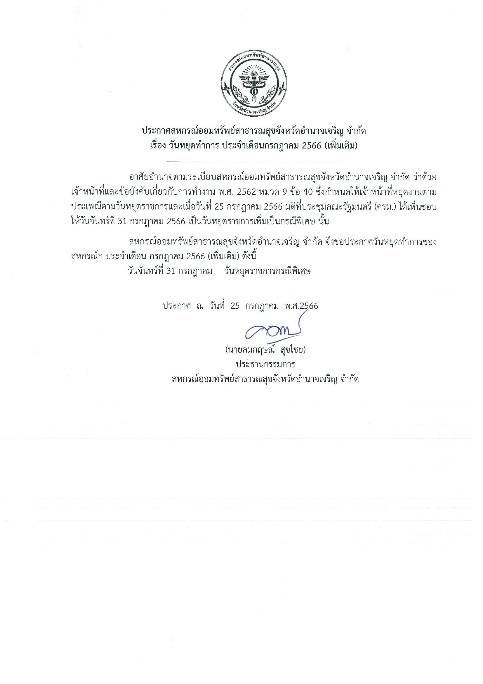 ประกาศ วันหยุดเดือนกรกฎาคม 2566 (เพิ่มเติม)