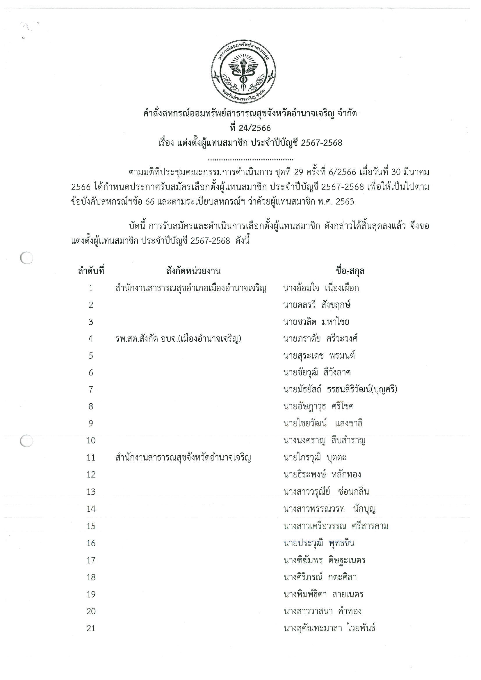 คำสั่ง แต่งตั้งผู้แทนสมาชิก ประจำปีบัญชี 2567-2568