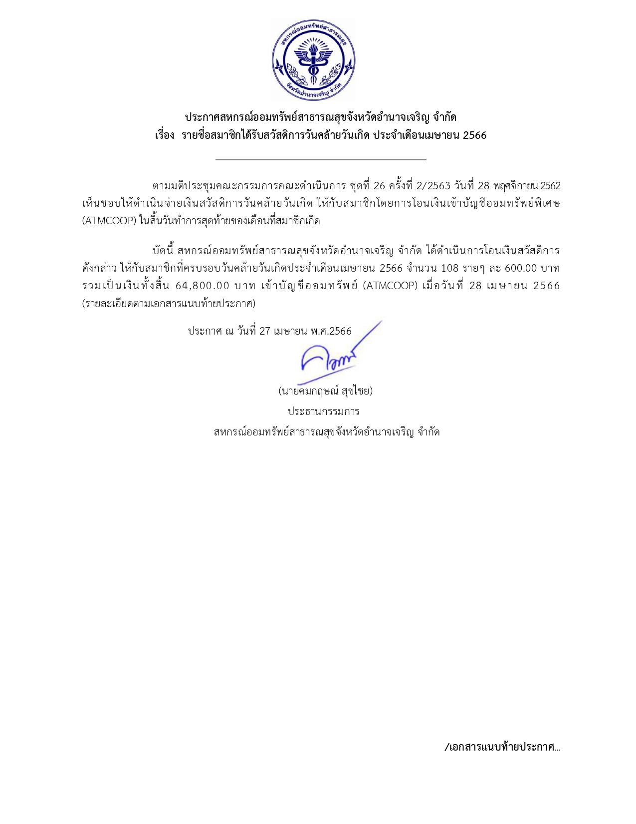 สวัสดิการวันคล้ายวันเกิด เม.ย.66
