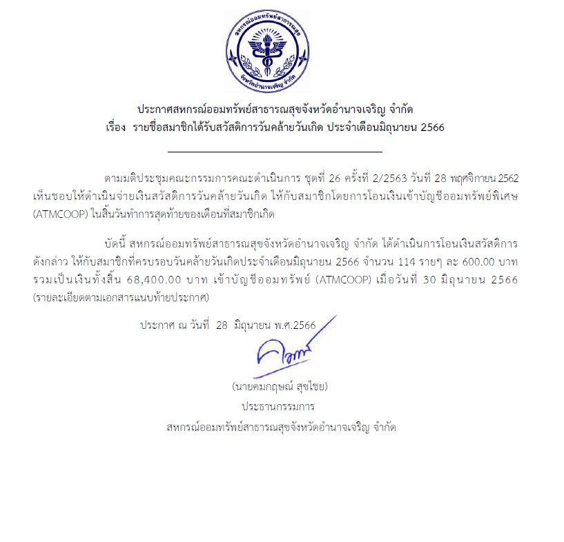 สวัสดิการวันเกิด ประจำเดือน พ.ค. 66