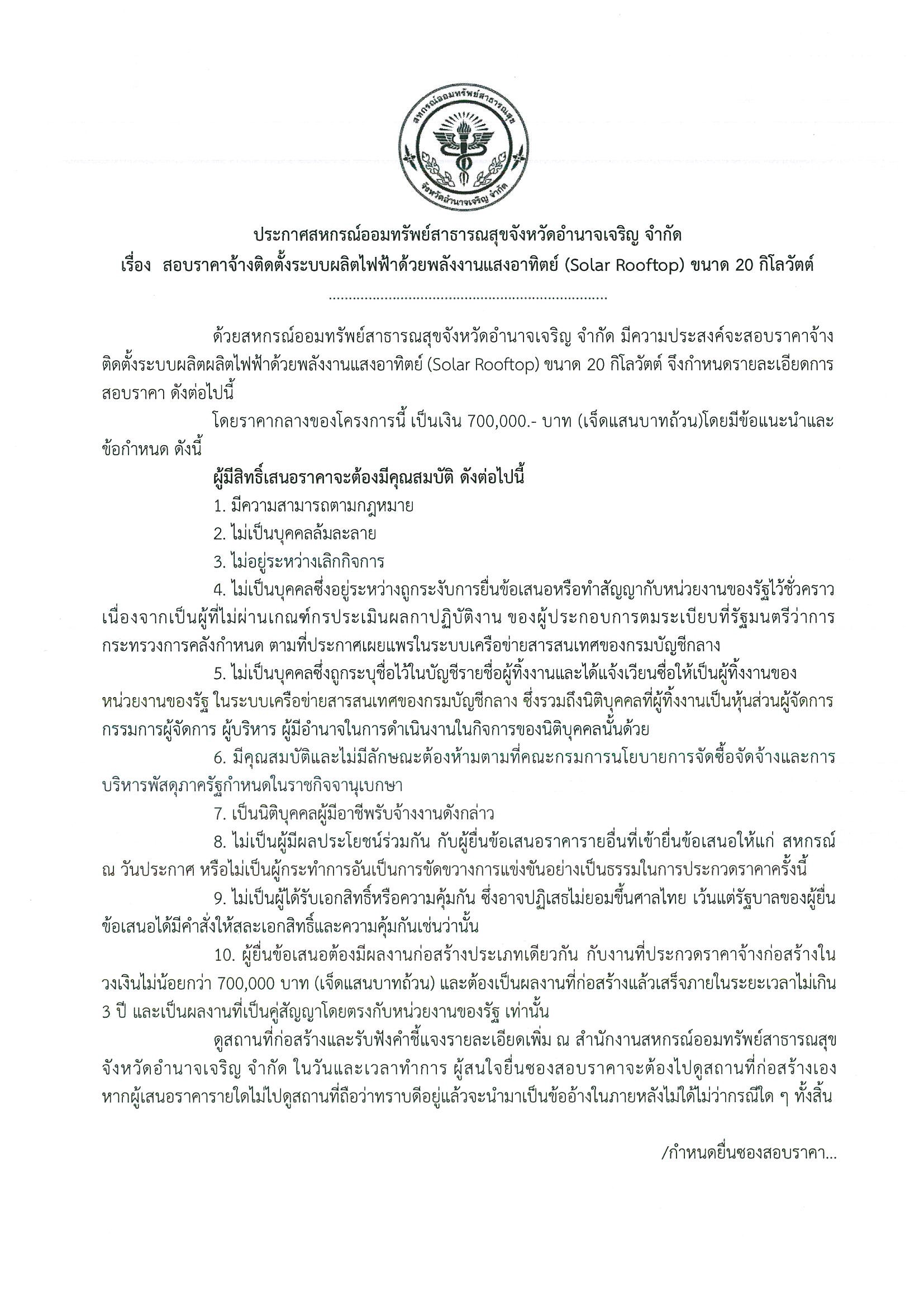 ประกาศ สอบราคาจ้างติดตั้งระบบผลิตไฟฟ้าพลังงานแสงอาทิตย์
