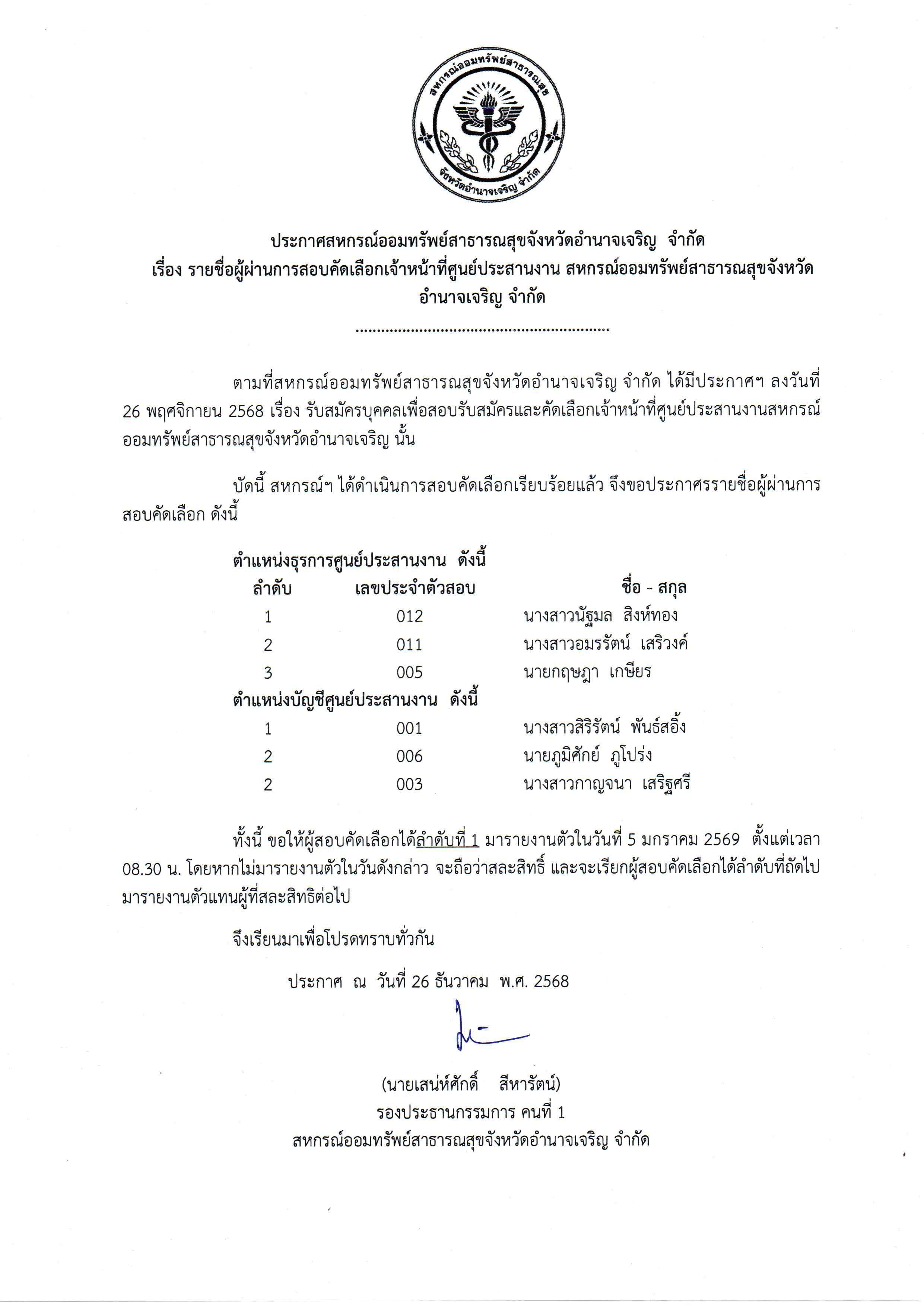 สหกรณ์ออมทรัพย์สาธารณสุขจังหวัดอำนาจเจริญ จำกัด