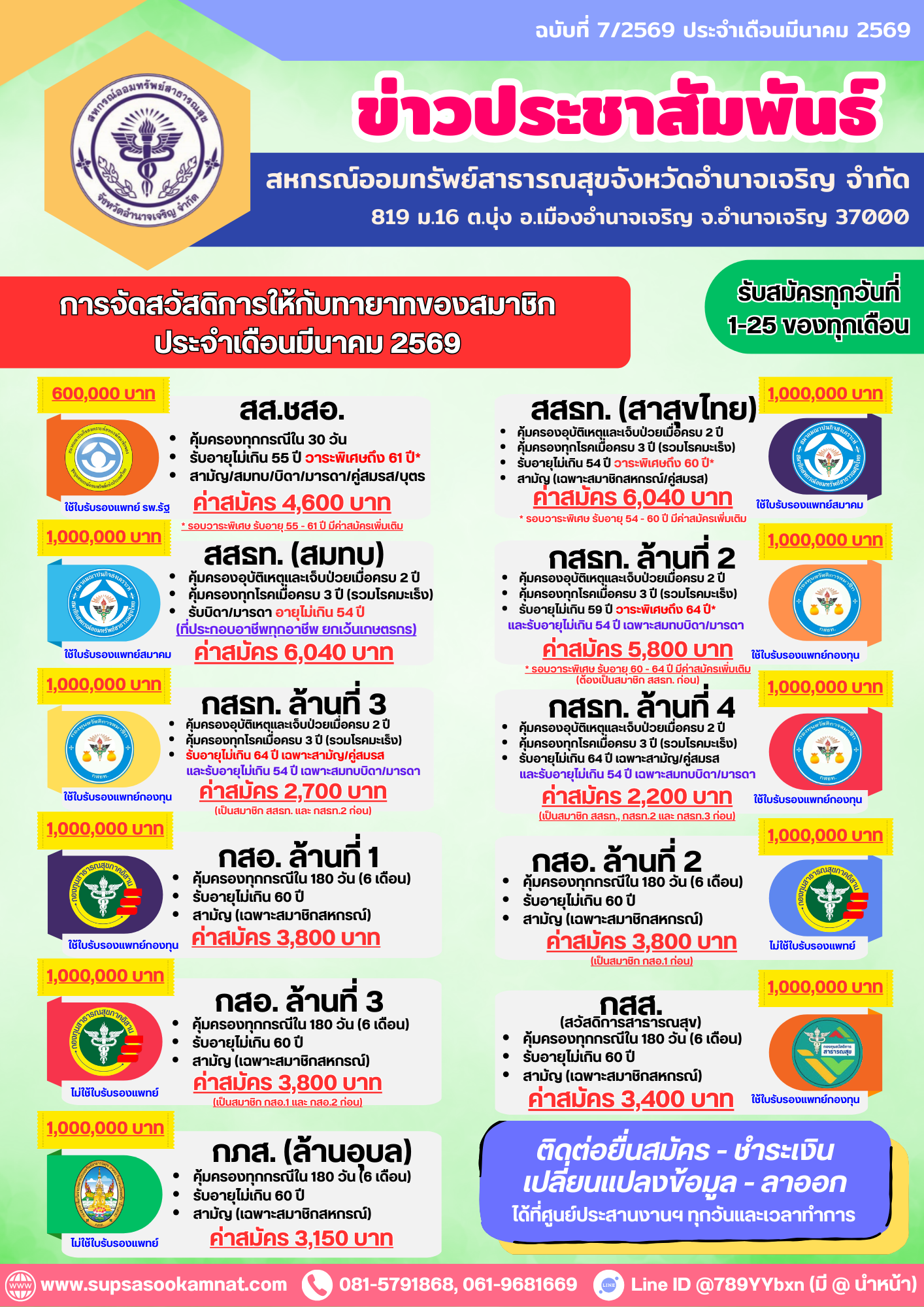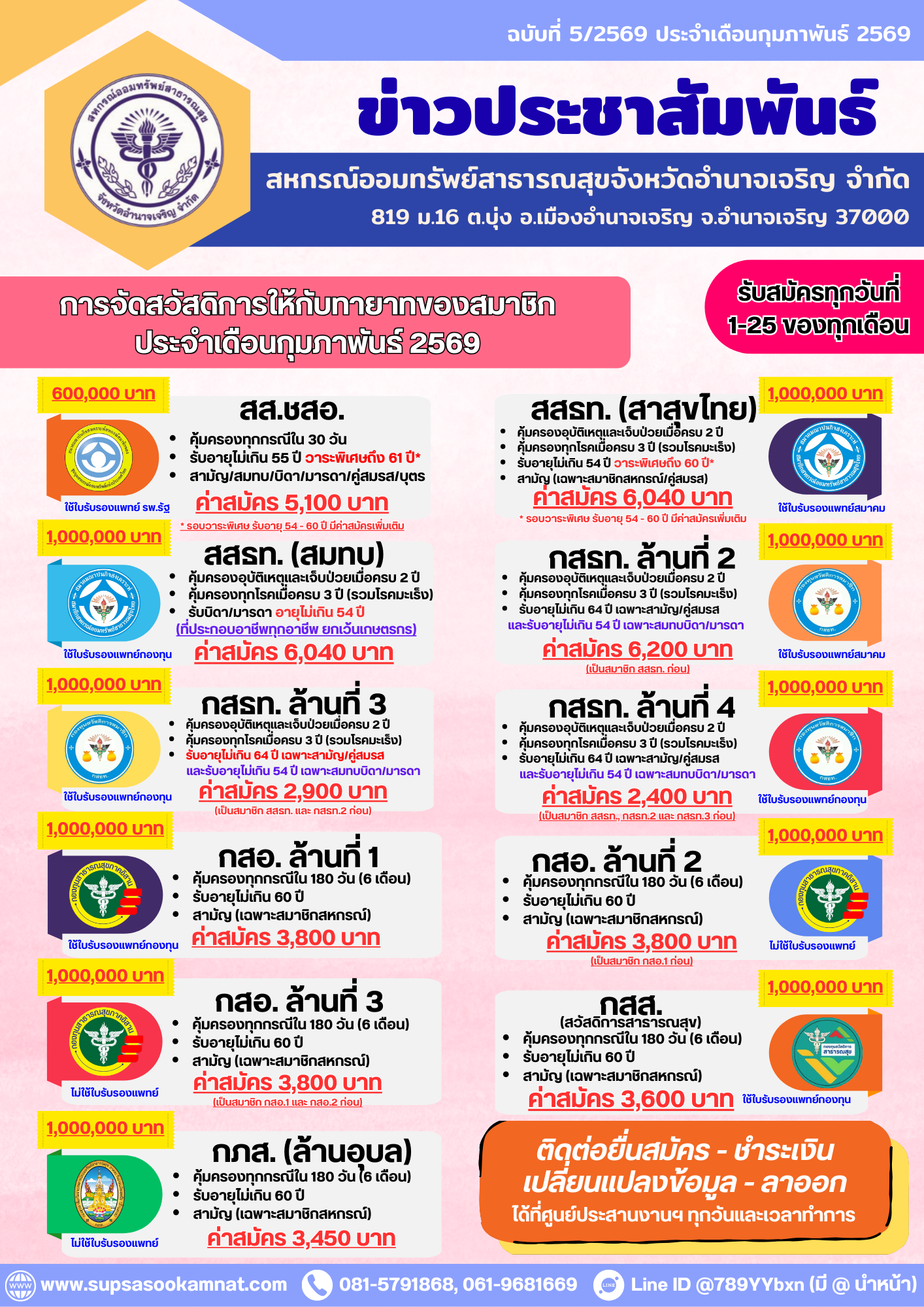 ประชาสัมพันธ์ การรับสมัครสมาชิกสมาคม/กองทุน ประจำเดือนกุมภาพันธ์ 2569
