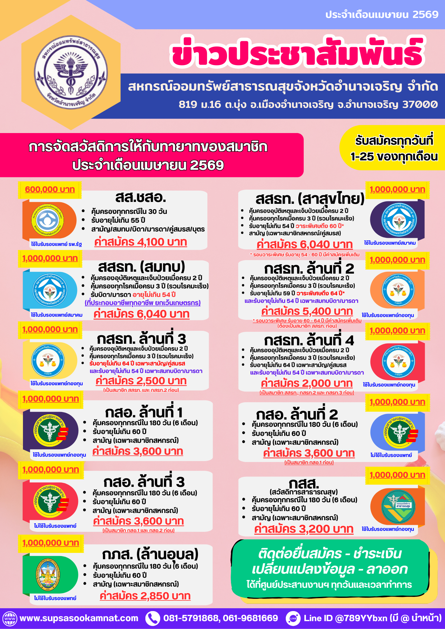 ตารางรับสมัครสมาชิกสมาคม/กองทุน ประจำเดือนเมษายน 2569