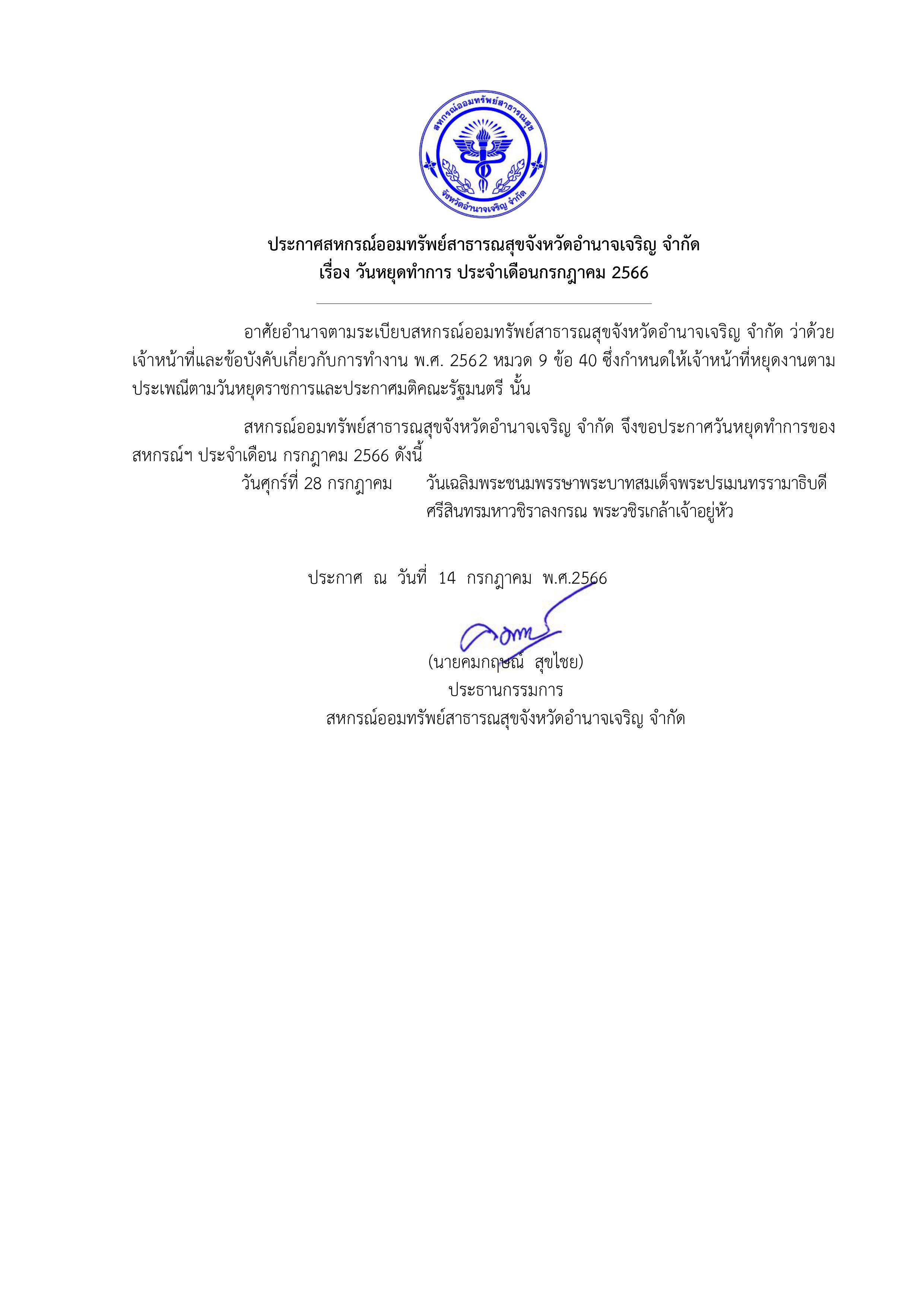 ประกาศ วันหยุดเดือนกรกฎาคม 2566 (เพิ่มเติม)
