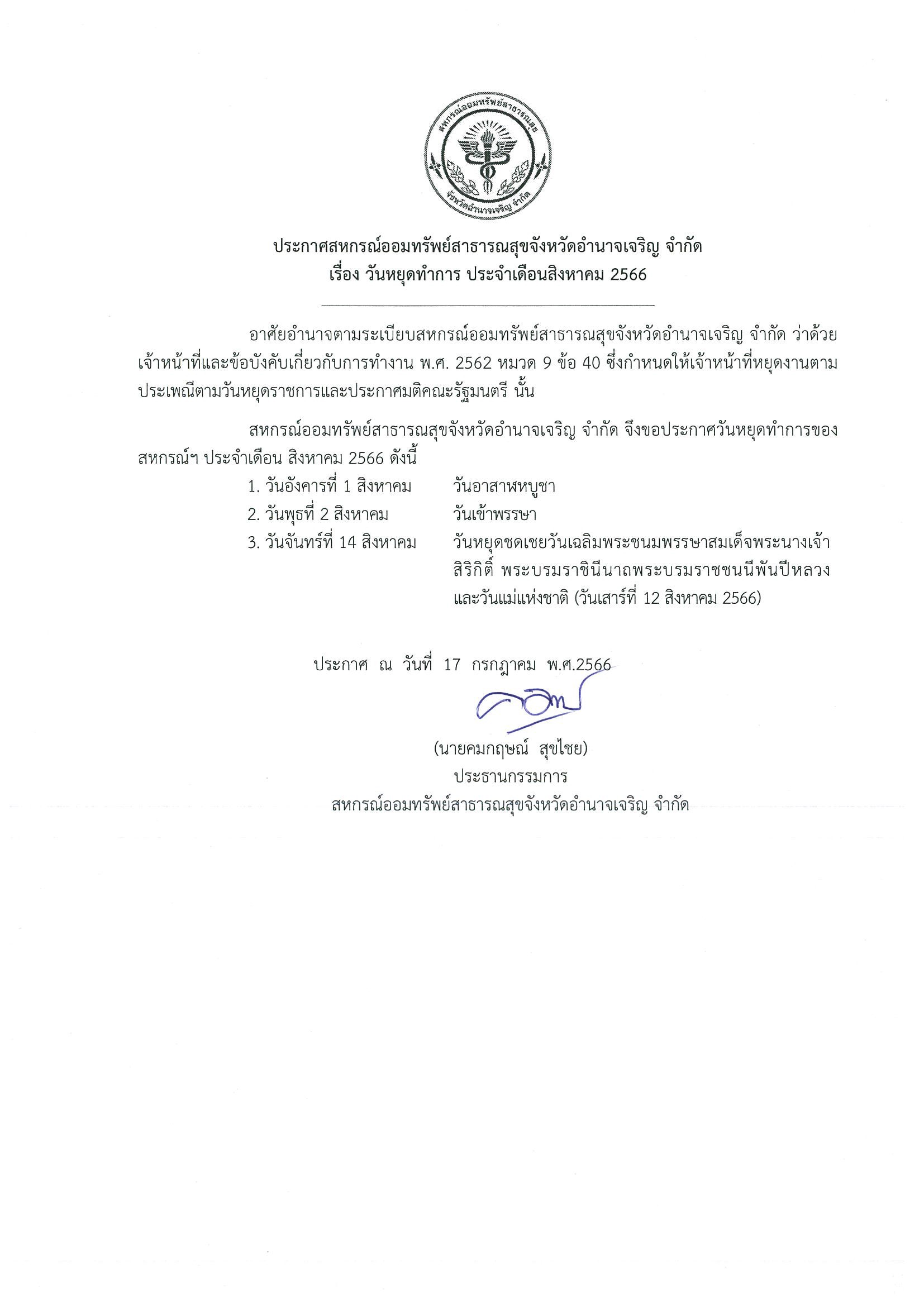 สหกรณ์ออมทรัพย์สาธารณสุขจังหวัดอำนาจเจริญ จำกัด