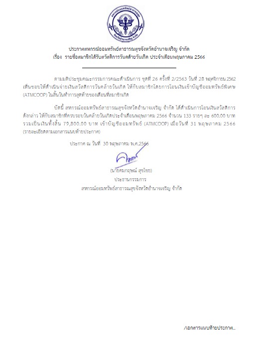 สหกรณ์ออมทรัพย์สาธารณสุขจังหวัดอำนาจเจริญ จำกัด