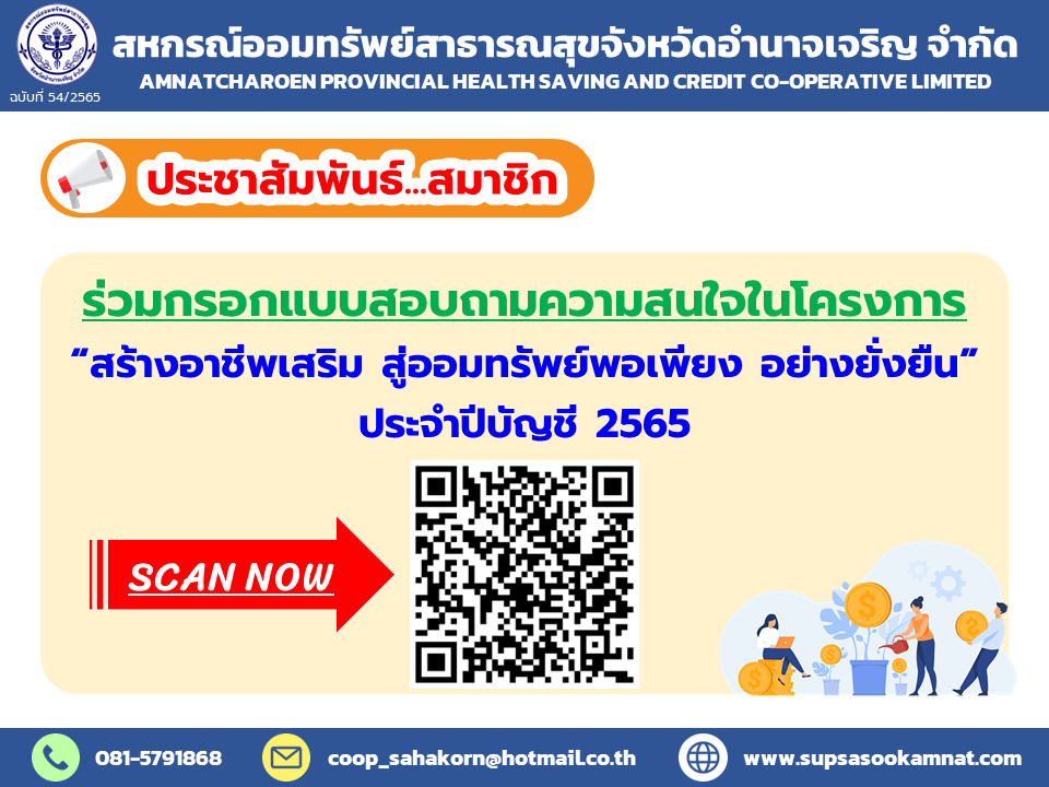ประกาศรายชื่อสมาชิกเข้าร่วมโครงการสร้างอาชีพเสริมฯ 2565
