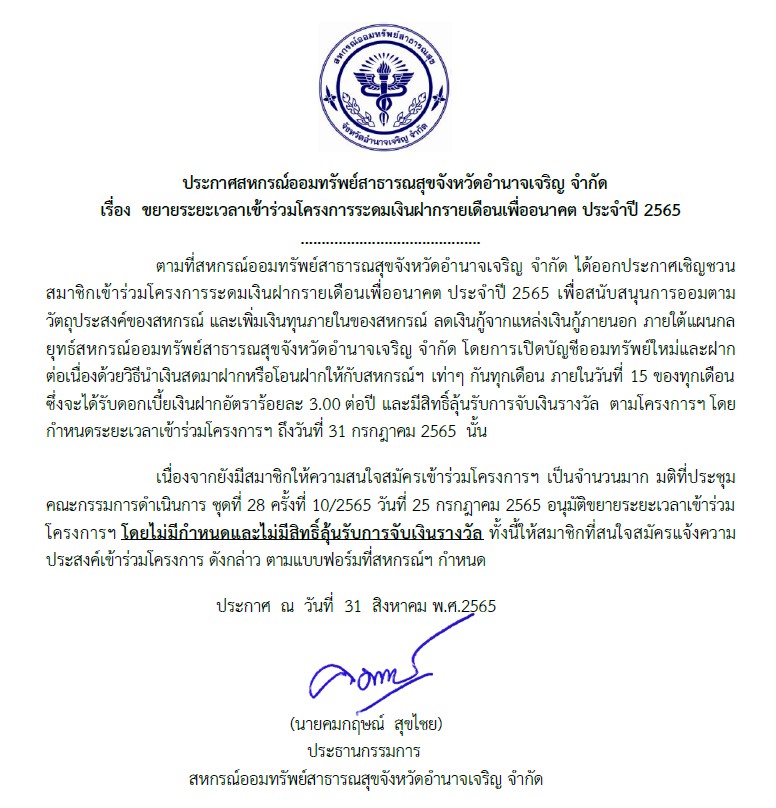 สหกรณ์ออมทรัพย์สาธารณสุขจังหวัดอำนาจเจริญ จำกัด