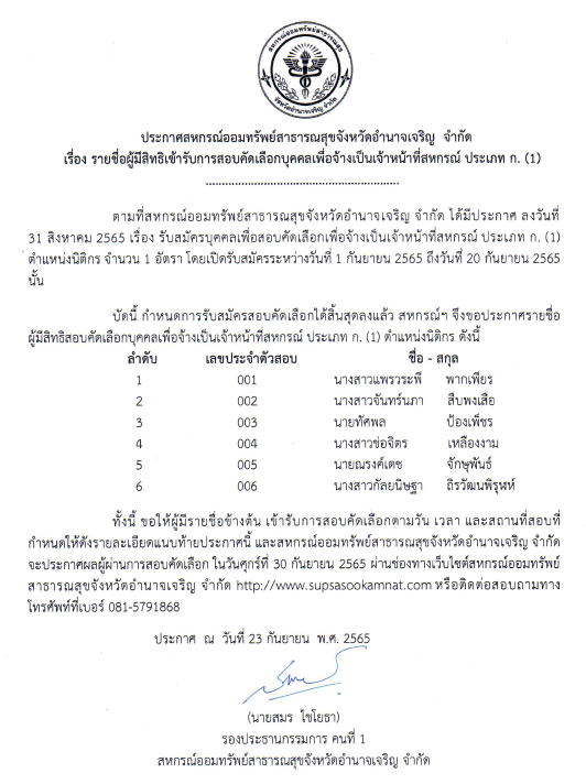 ประกาศ การรับสมัครเจ้าหน้าที่สหกรณ์ ประเภท ก. (1)