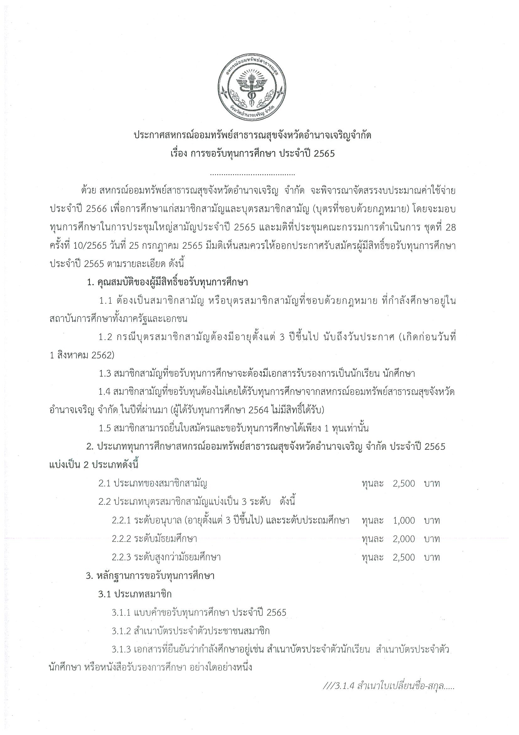 ประกาศขอรับทุนการศึกษาประจำปี 2565