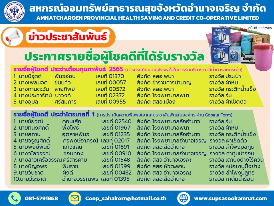 AMNATCHAROEN PROVINCIAL PUBLIC HEALTH SAVING AND CREDIT CO-OPERATIVE LIMITED
