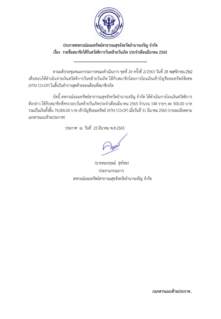 สหกรณ์ออมทรัพย์สาธารณสุขจังหวัดอำนาจเจริญ จำกัด